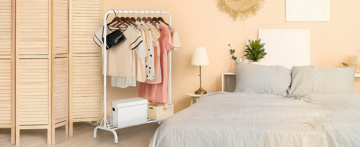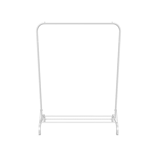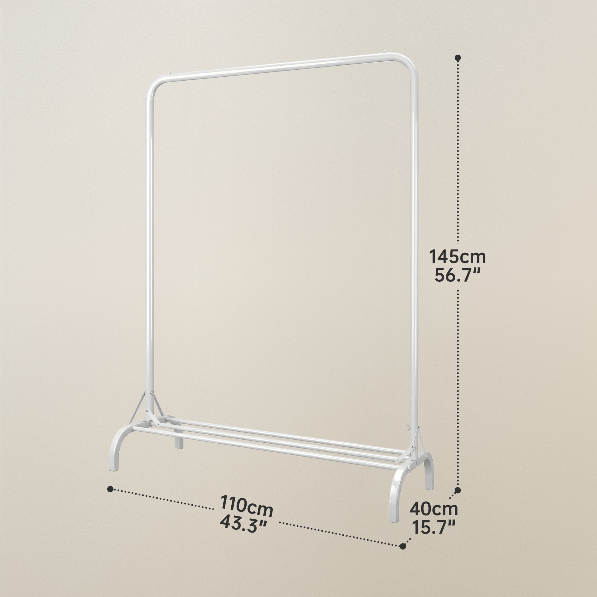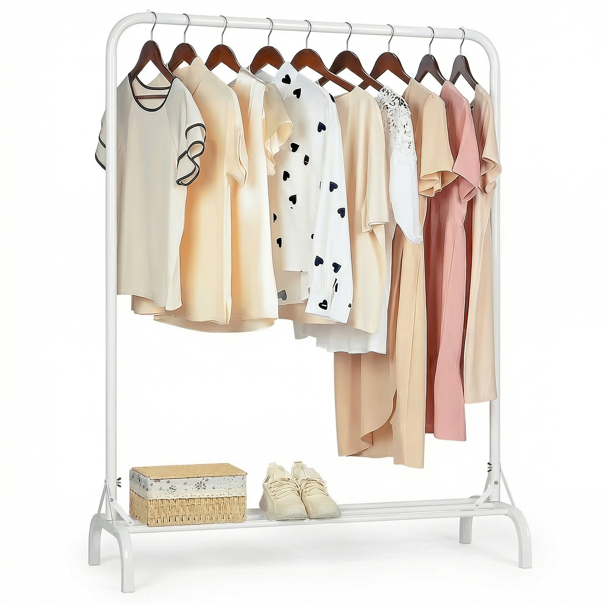 Sturdy Clothes Rail for Bedroom, Portable Clothes Rack with Shoe Storage, Metal Clothing Rail for Hanging Garments (White)