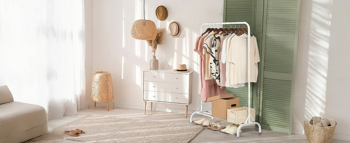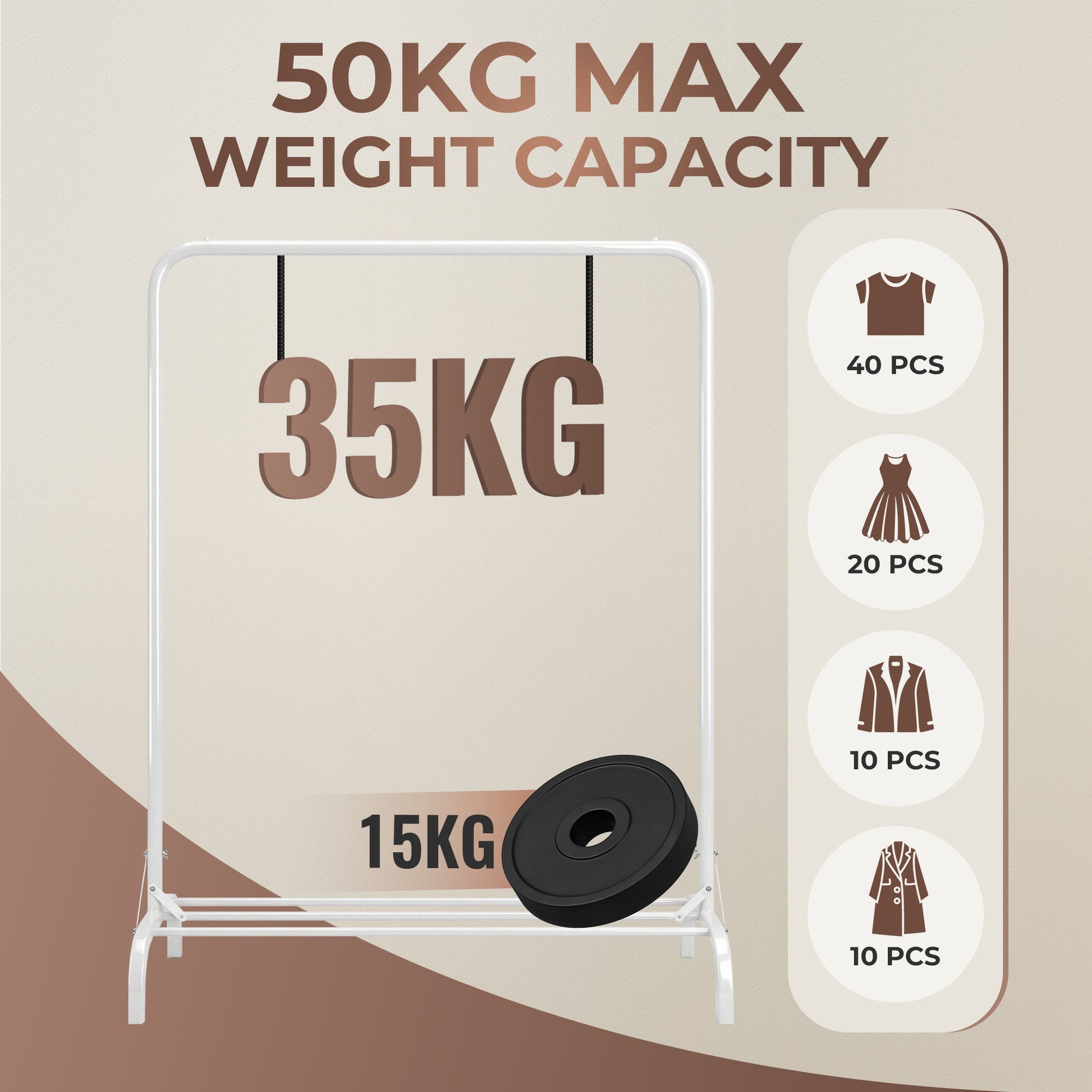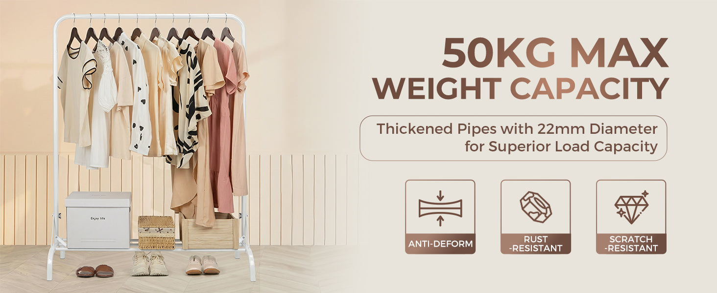 - 【Strong & Durable】Crafted from premium metal tubing, our clothes rail delivers reliable strength and long-lasting durability. With a 50 kg capacity, it provides ample space for coats, dresses, and everyday outfits