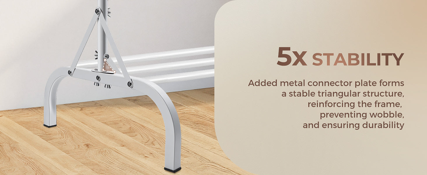 - 【Enhanced Stability Design】Reinforced with dual iron plates at the base, the clothes rail gains extra support to prevent tilting and wobbling. Sturdy and reliable, it is ideal for everyday use as a hanging rail