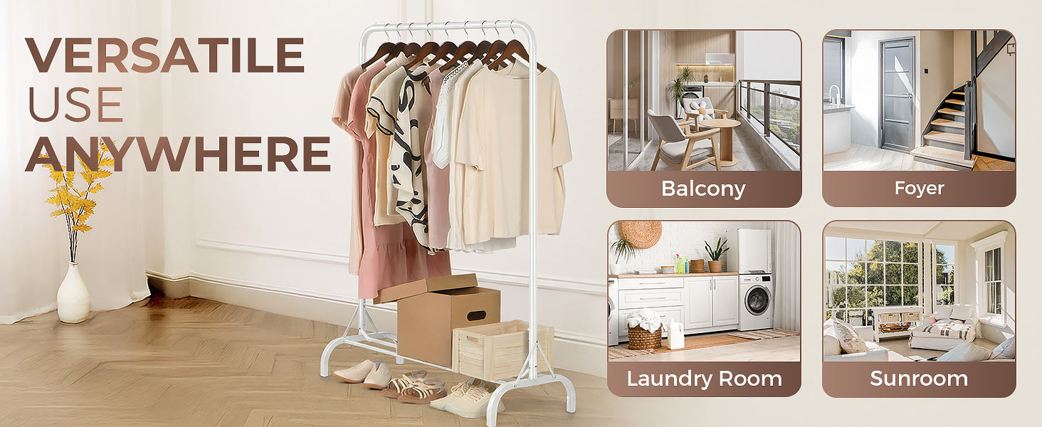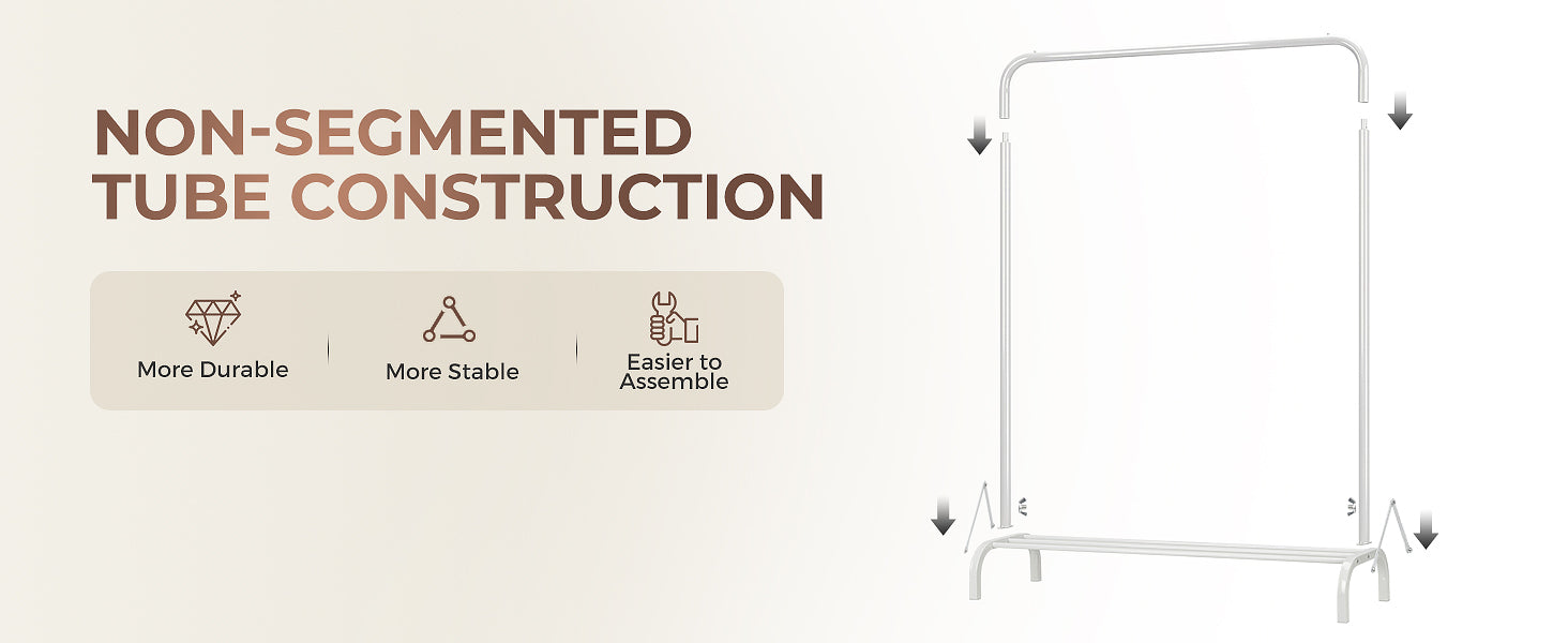 - 【Easy to Assemble】Built with a non-segmented tube construction, this clothes rail removes fragile joint connections for a stronger, more stable frame. The simplified design lets you complete setup in only 10 minutes